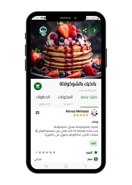 اكتشف متعة الطهي بوصفات تلبي ذوقك الخاص وتناسب احتياجاتك. دع الذكاء الصنعي يختار لك الوصفات المثالية، ودع مسوقينا يوفرون لك كل المكونات المطلوبة بسرعة وسهولة.